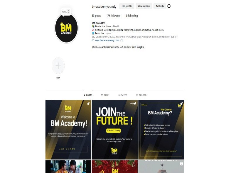 BM TECHX manages BM Academy’s social media presence with a focus on promoting its courses and student success stories. By sharing engaging content like testimonials, course highlights, and informative reels, we connect the academy with potential students. Our targeted campaigns ensure maximum reach and help establish BM Academy as a trusted name in education.